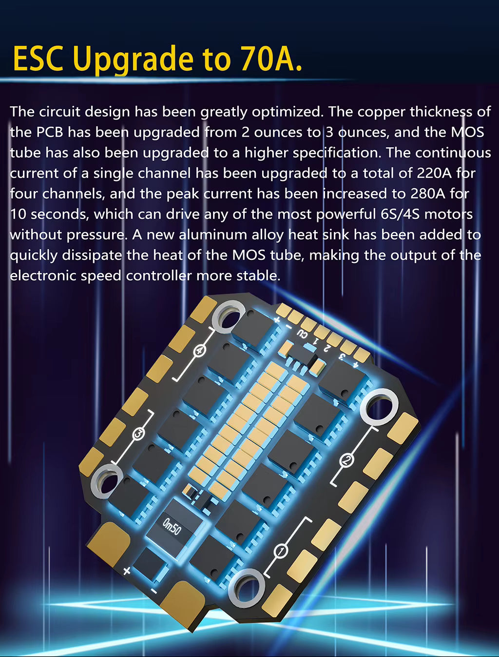 Enhanced MOSFETs + aluminum heat-sink for better cooling