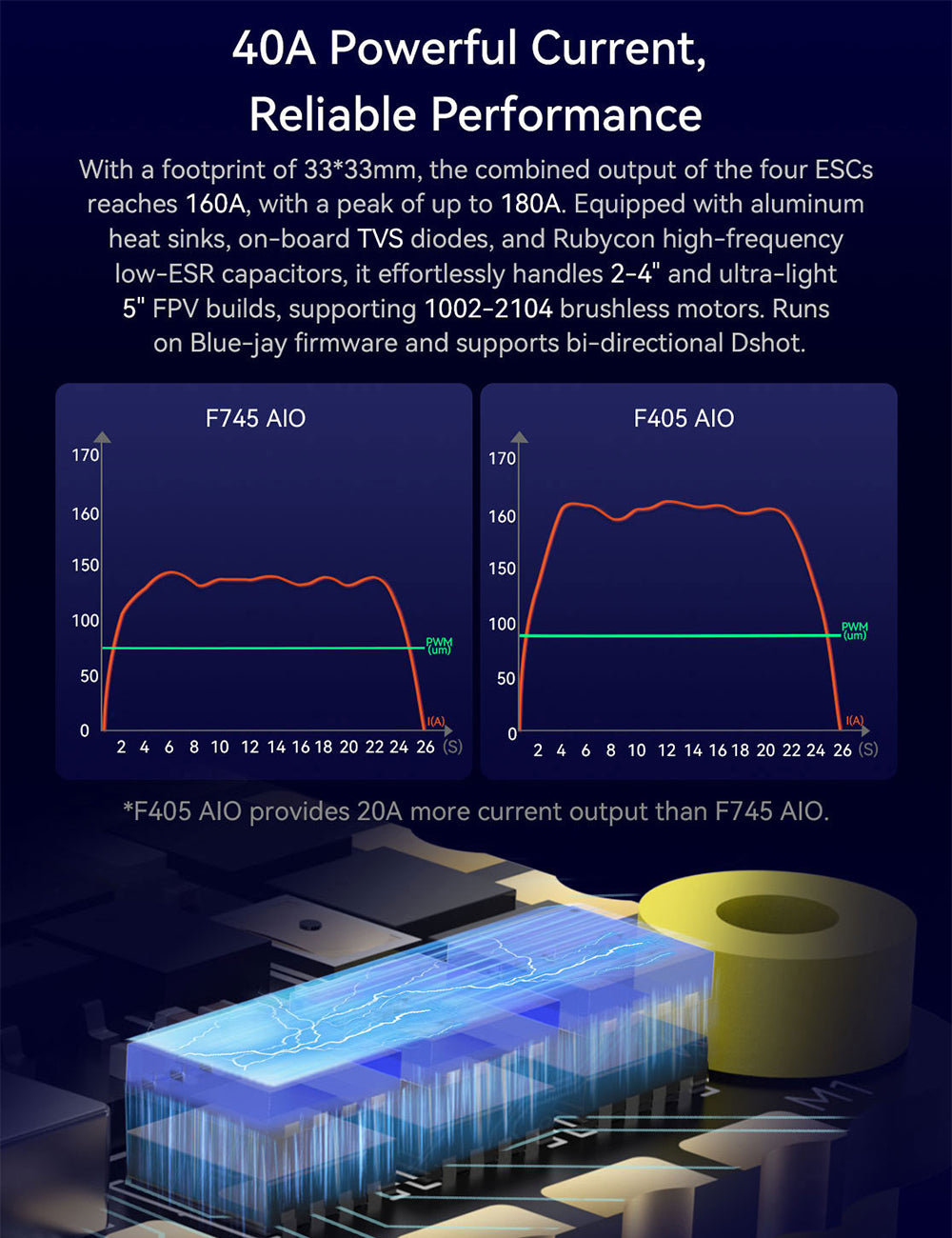 - Designed for 2–4” and ultralight 5” FPV drones