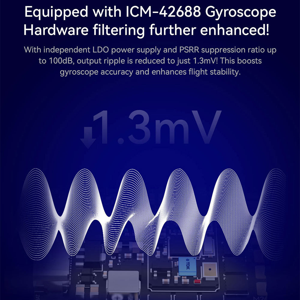 - ICM-42688P gyro – clean signal and stable flight performance