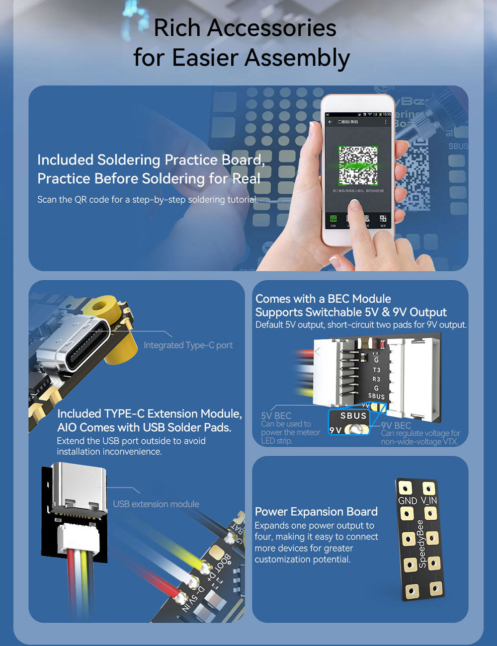 - Includes BEC module, power expansion board & USB extension module
